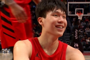 GIF-杨瀚森大帽被吹犯规 微笑着表示不解
