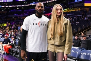 这大长腿!湖人官推晒照:詹姆斯和卡梅隆·布林克场边合影