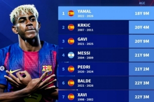 巴萨队史达成150次出场最年轻纪录榜:18岁亚马尔居首,梅西第四