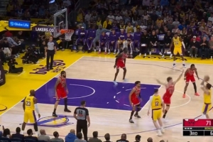 下一篇: 还能飞啊!詹姆斯反击接里夫斯传球 中路拉杆躲开防守上篮打中