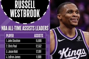 里程碑预警!威少再送3助将超马克·杰克逊和纳什 上升至历史第五